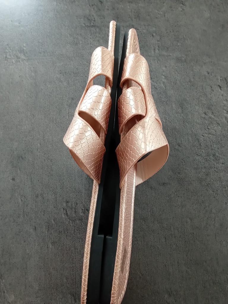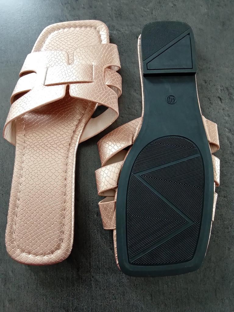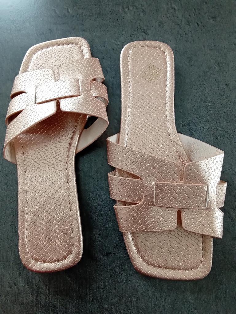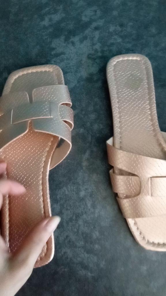 Catâri drăguți încrucișați pe picior. 👍💐 Sunt confortabile, dar sunt atât de largi. 👎🥺 Nu am primit culoarea aurie ci roz stralucitor. 😭😭