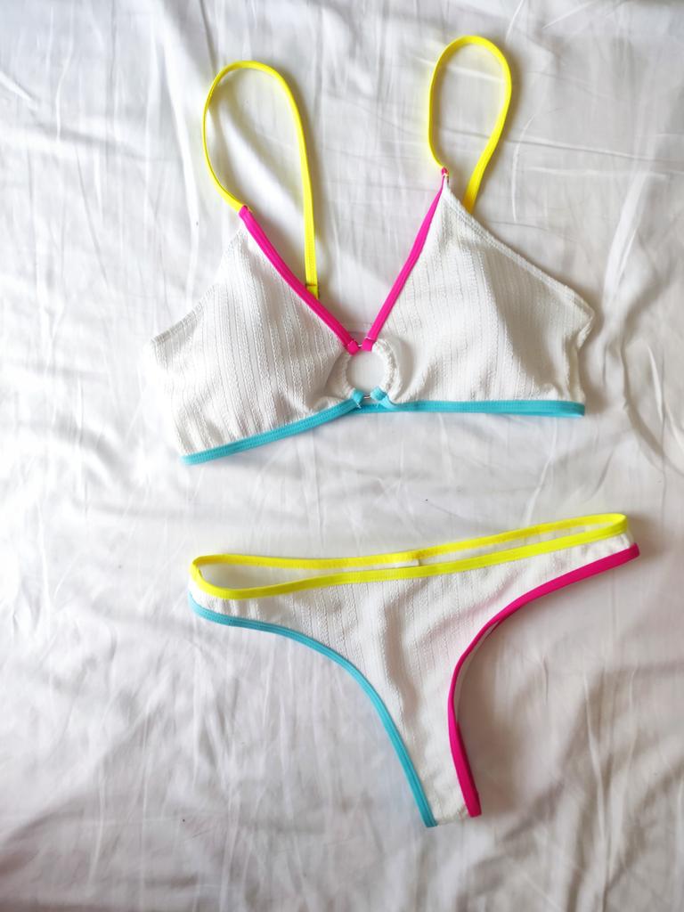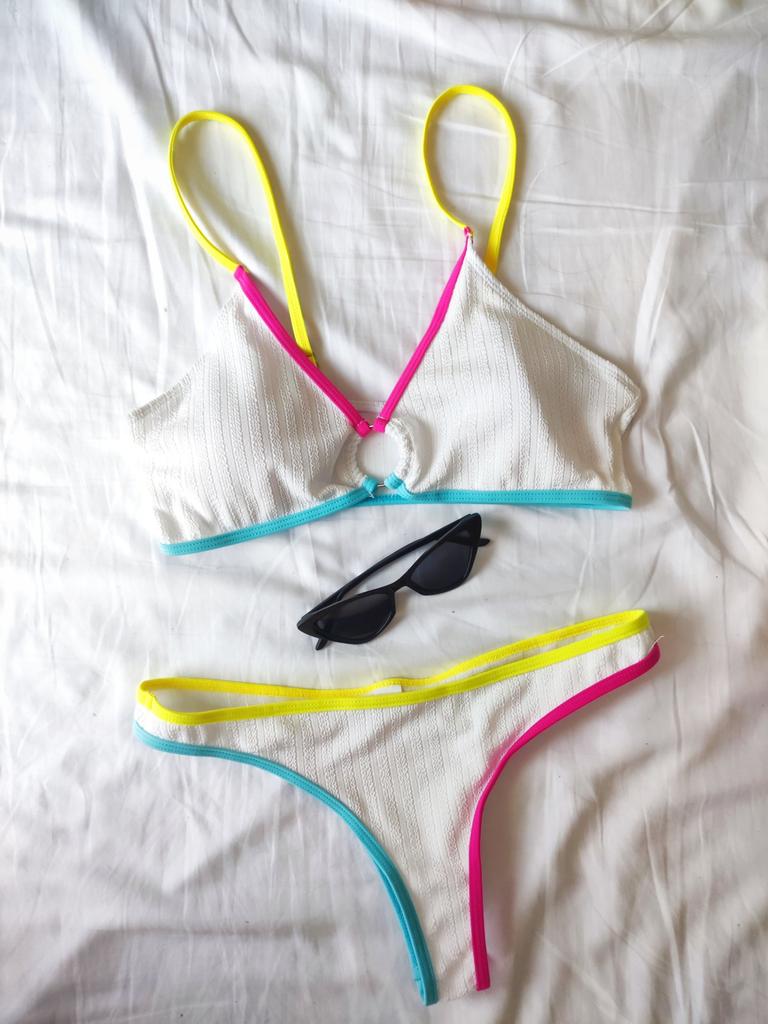 Splicing talie mijlocie Bikini cu croiala înaltă Costum de baie pentru femei Costum de baie pentru femei Set de bikini din două piese Costum de baie pentru baie Swim Lady