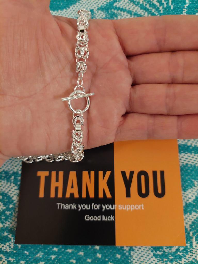 Îmi place lanțul; arată neobișnuit din cauza țesutului său. Plăcut surprins. Mulțumesc pentru produs
