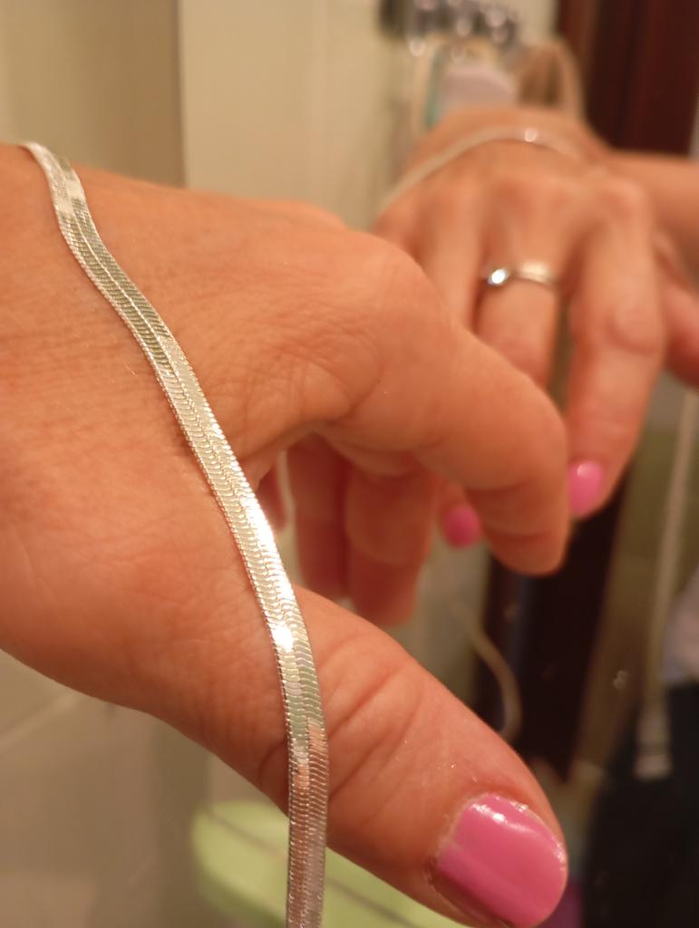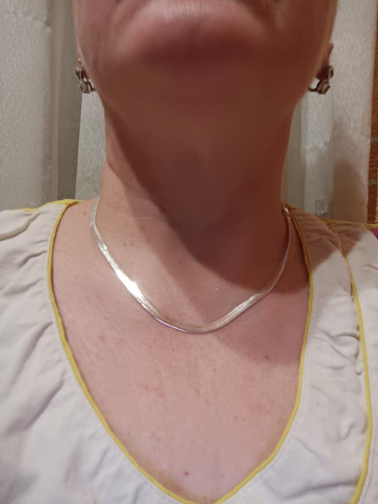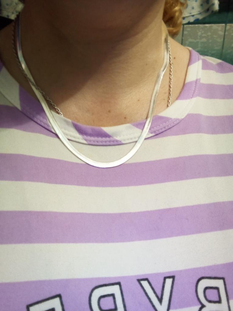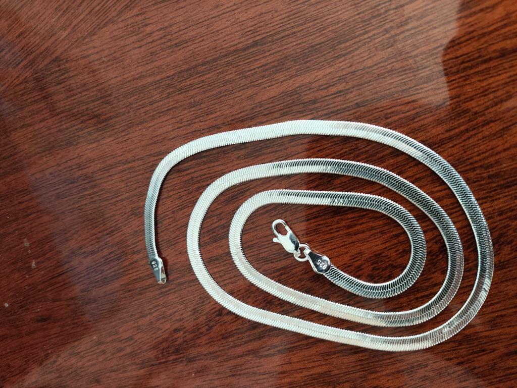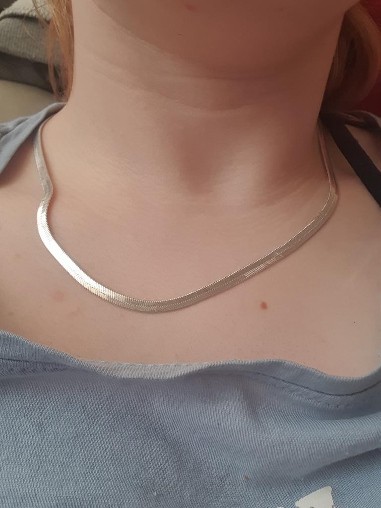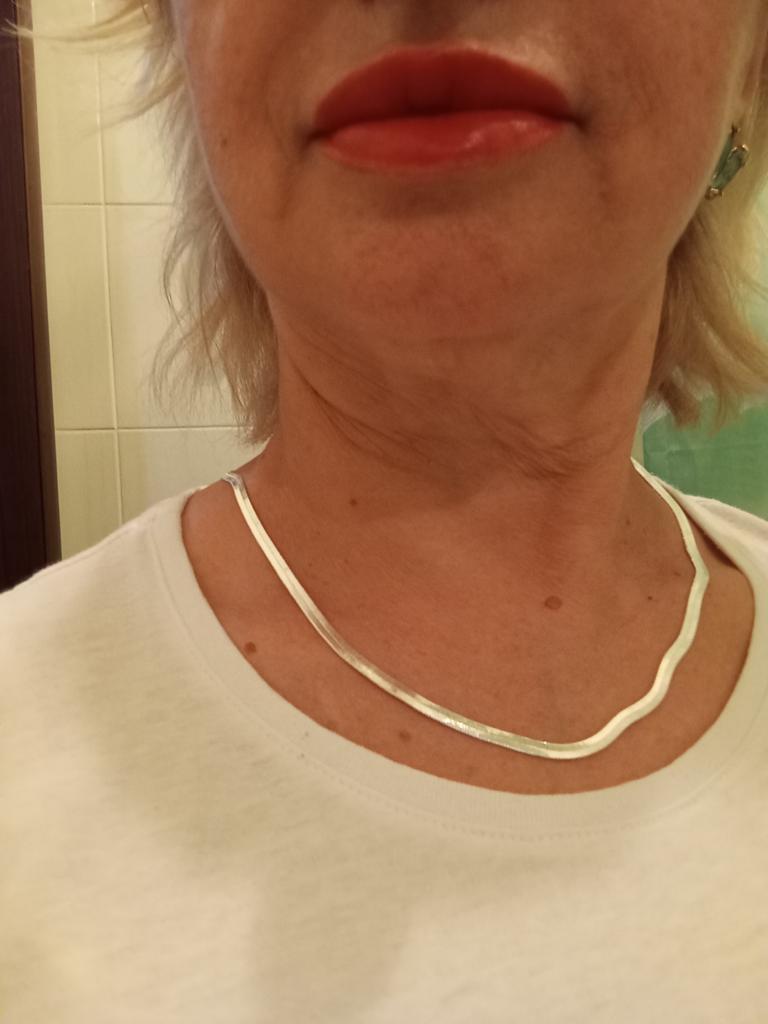 Lant plat foarte lucios, larg. Cred că va arăta bine peste un pulover negru.