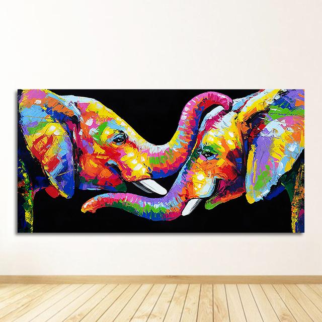 Tablouri pe pânză, artă de perete, postere și imprimeuri, cupluri elefanți, imagini pentru decorul camerei de zi, animale abstracte, elefant colorat