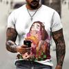 Personalitate de modă minimalistă anime, gât rotund, mânecă scurtă, imprimeu de vară spirit casual
