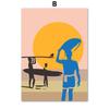 Plajă abstractă, bărbat, fată, surf, flamingo, artă de perete, pictură pe pânză, postere și imprimeuri nordice, poze de perete pentru decorarea camerei de zi, fără cadru