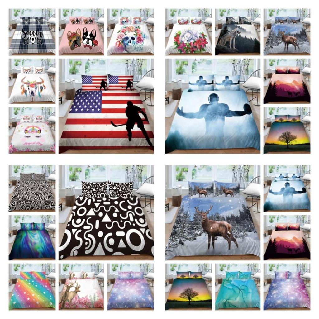 Seturile includ: husă de pilota, fețe de pernă 100% nou-nouță și de înaltă calitate ( NOTE: Seturile nu includ cuverturi sau cearșafuri plate) Senzație de mână moale, culori mult mai strălucitoare și imagini vii Material: Poliester. Materialul este moale, respirabil și fără decolorare.