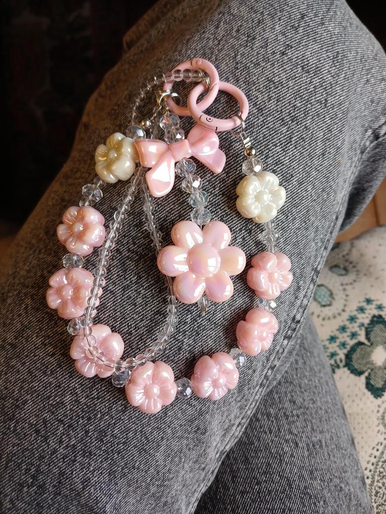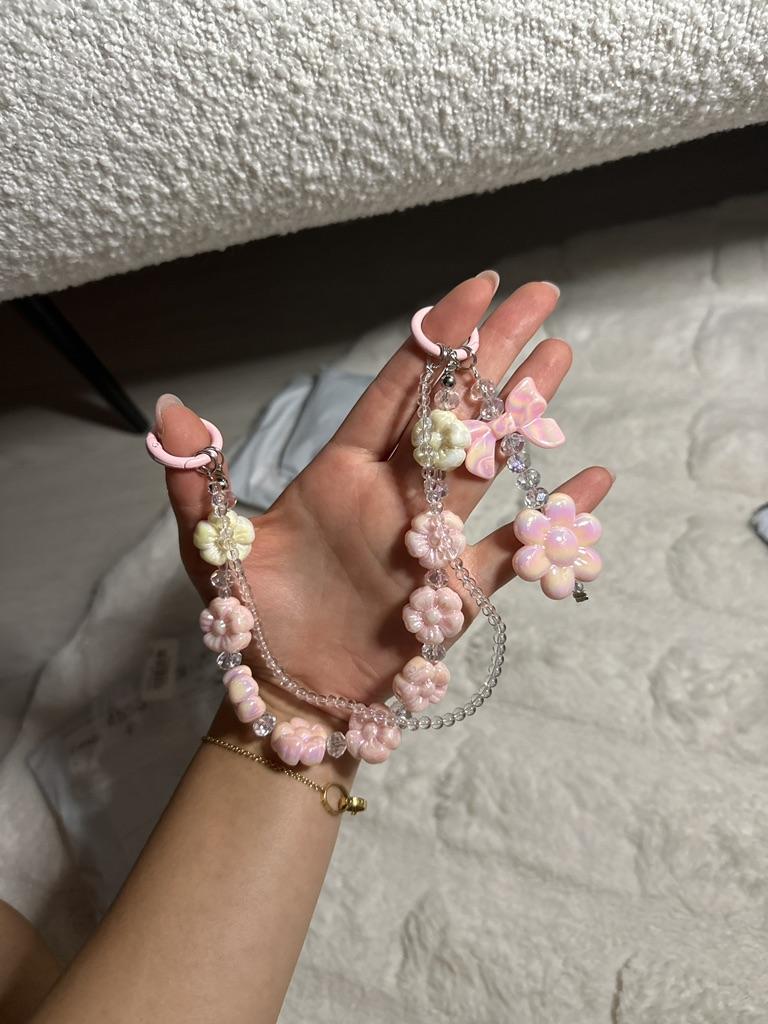 Bricolaj, flori mici cu arc de cristal proaspăt, brățară cu perle de dragoste, lanț de telefon mobil pentru dragoste pentru femei, accesorii pentru carcasa de telefon mobil anti-cădere