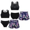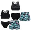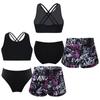 3 bucăți de costume de baie pentru fete, fără mâneci, cu bretele în spate, crop top cu pantaloni scurți și slip imprimați pentru înot la plajă, la piscină