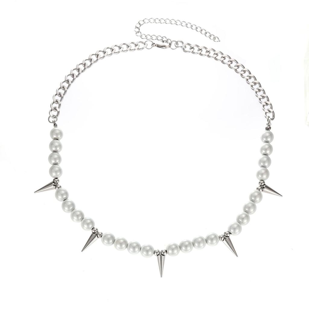 Colier cu perle pentru bărbați și femei Tide Hip-Hop Choker din oțel inoxidabil Colier cu lanț pentru claviculă cadou