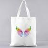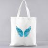 Geantă de cumpărături în stil coreean de bază, ocazional, pe umăr, pentru navetist, cu model cu pene, panza imprimată, tocuri de băcănie