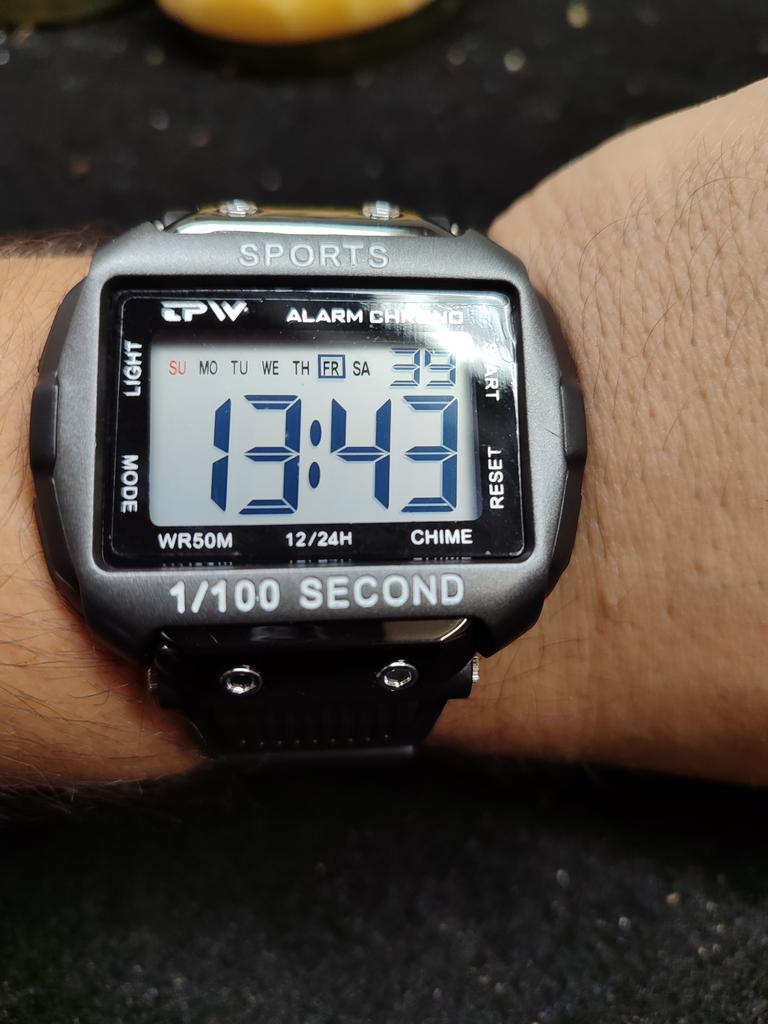 Cel mai bun model de acest tip de ceas pe care l-am avut vreodată! Cadran mare, clar vizibil, toate min. functii necesare: calendar, cronometru. Capacul din spate este înșurubat, ceea ce indică calitatea construcției, este rezistent la apă și la șocuri!!!! Bombă cu ceas!!! Vă recomand!