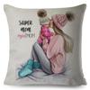 Fashion Cute Cartoon Super Mama Husă de pernă In 45*45cm Decor Mamă și Bebeluș Față de Pernă pentru Canapea Acasă Față de Pernă Super Daddy