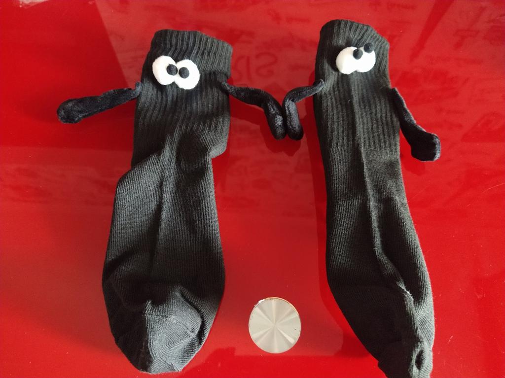 Șosete cool. „Mânerele” sunt din pluș și au în interior magneți mici.