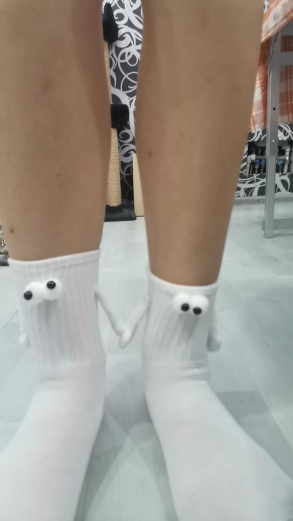 1 pereche de șosete de cuplu de legături cu aspirație magnetică șosete de cuplu de păpuși 3D cuplu care se țin de mână șosete amuzante cu tub mijlociu șosete drăguțe Cadouri amuzante pentru femei bărbați