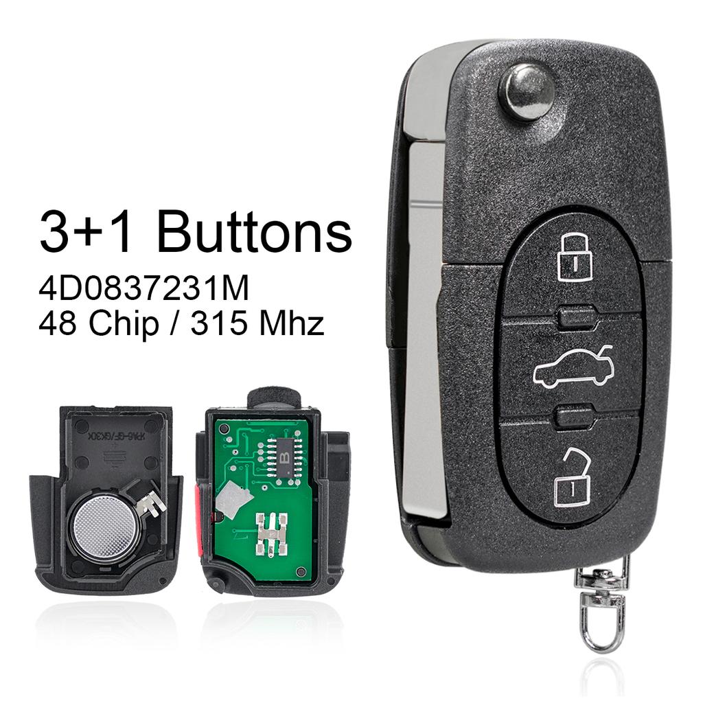 Sistem de intrare fără cheie 315Mhz 3+1 butoane Cheie pentru telecomandă auto ID48 Chip 4D0837231M Cheie de schimb pentru A4 S4 A6 A8 TT 1997-2005