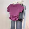 Femeie Tricou scurt Vară Spate scobit slim-fit talie plisată Top cu mâneci scurte pentru femei