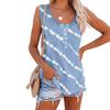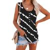 Tricou de vară pentru femei cu gât rotund, cu dungi, fără mâneci, cu vestă cu nasturi