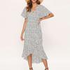2023 Moda Vară Femei Sexy Petrecere Decolteu în V Rochii din șifon cu șireturi Imprimare florală Volane mâneci Elegantă Rochie Maxi de plajă 27999