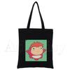 Ponyo Canvas Negru Geantă pentru cumpărături Geantă reutilizabilă din pânză de umăr Geantă de carte Cadou