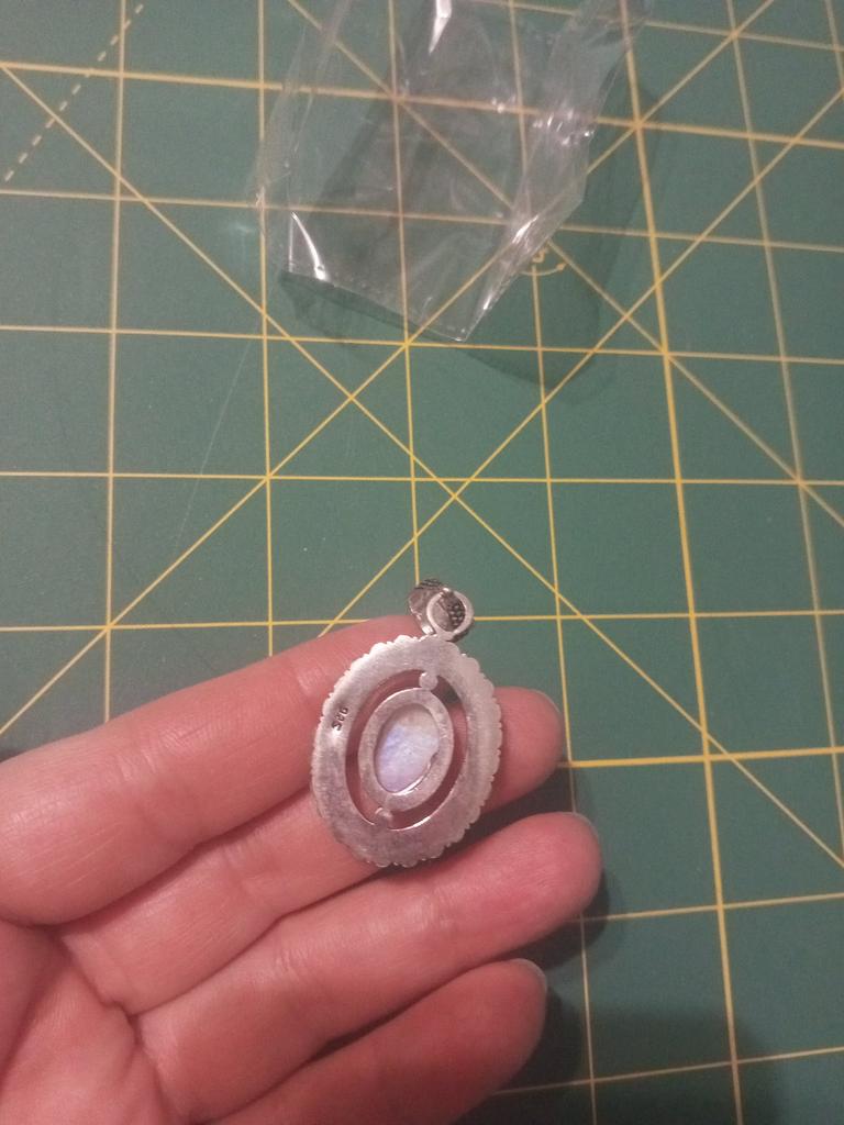 Totul a fost împachetat perfect, pandantivul este destul de elegant, mă așteptam la o manoperă mai aspră) piatra are irizații, semnul 925 este ștanțat pe spate Arata foarte frumos, fermecător și blând. multumesc!)