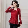 Bluză din dantelă Îmbrăcăminte pentru femei Negru Topuri noi Femei Elegantă cu mânecă lungă Cămașă albă cu decolteu în V