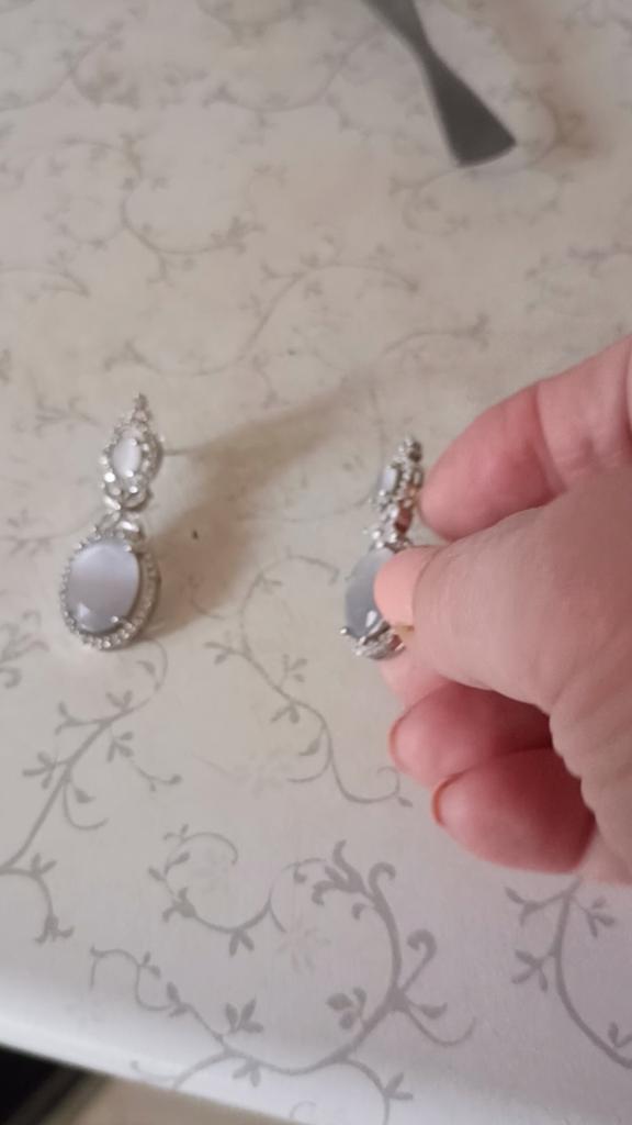 Ce obții:- Cercei cu picătură placați cu argint oxidat, au o formă ovală împânziți cu diamant american, securizați cu închidere pe stâlp și pe spate.