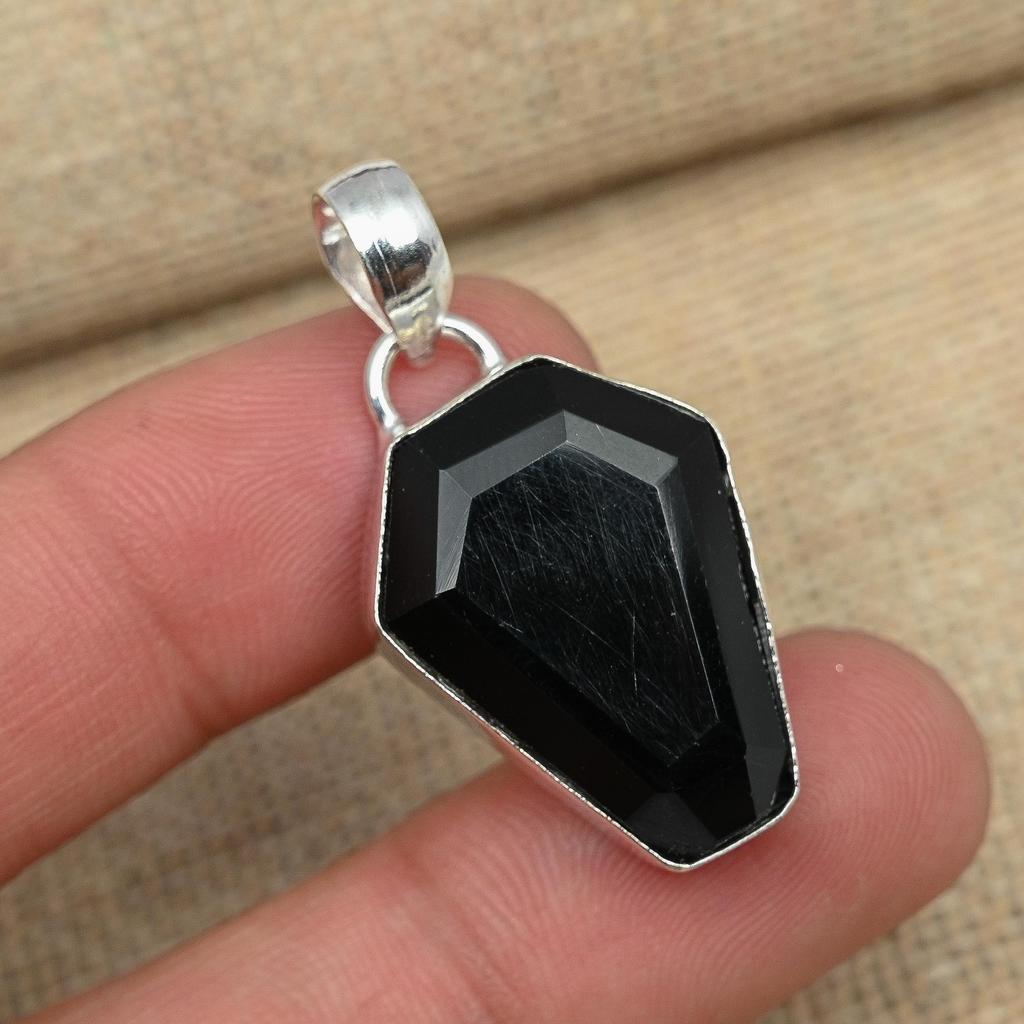 Pandantiv de damă, bijuterii lucrate manual, piatră prețioasă spinel neagră din argint 925