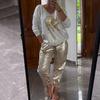 Ținute două piese pentru femei de primăvară, tricou cu mânecă scurtă cu paiete, cu găuri, pantaloni din denim, set de tricou pentru femei, costum