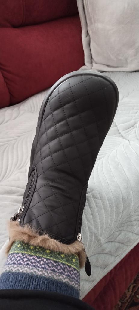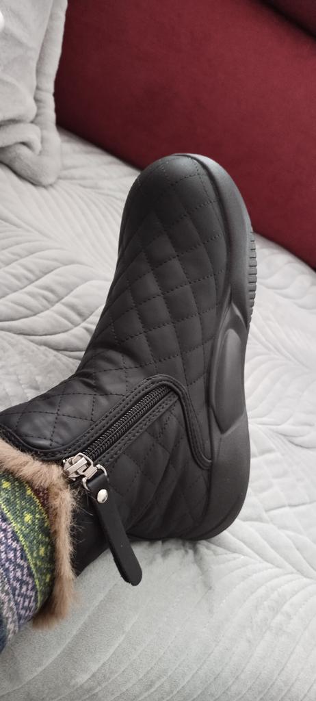 Bună ziua tuturor! Cizmele sunt drăguțe, în loc de adidași de iarnă. Ingrijit, modern. În videoclip am spus că a le pune este puțin strâns. Și tălpile sunt gratuite. Apropo, în fotografie este mai mult albastru, în realitate sunt chiar negre.