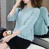 În primăvară și vară Pulover scobit nou din tricot Jachetă de damă cu secțiune subțire cu gât rotund Îmbrăcăminte linie largi Cămașă cu mânecă de șapte minute
