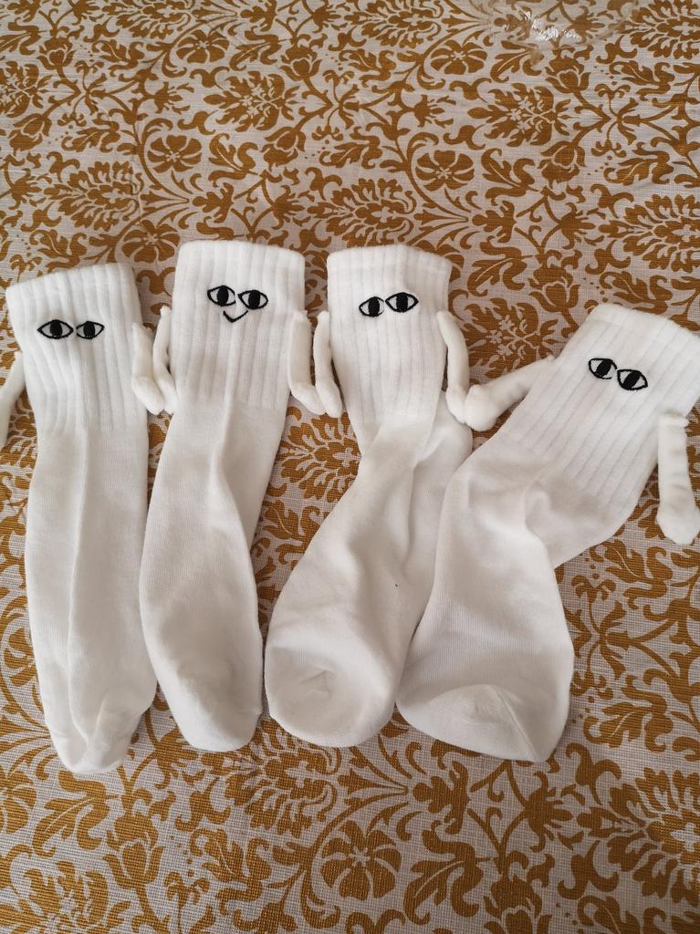 1 pereche Club Celebrity Ins Fashion Amuzant Creativ Magnetic Atractie Mâini Negru Alb Ochi de desene animate Cuplu Sox Sosete