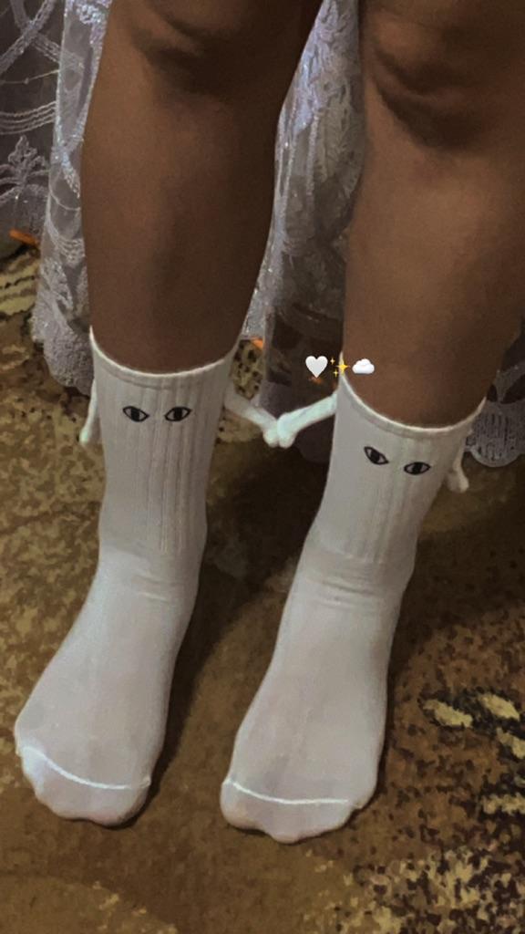 HEHE, șosetele sunt cu adevărat drăguțe și mișto! Picioarele mele au marimea 39, iar acesti ciorapi sunt putin prea mici, dar poate se vor intinde mai tarziu. Există magneți în interiorul mânerelor, astfel încât acestea să poată apuca mânerele🌹.