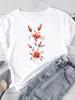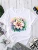 (Mărimea asiatică) Tricou cu imprimeu pentru femei Top Îmbrăcăminte Tricou la modă Tricou pentru femeie, Acuarelă, Floral, cu decolteu în formă de O, Tricou grafic casual cu mânecă scurtă