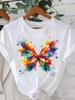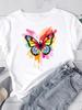 (Mărimea asiatică) Tricou cu imprimeu dulce pentru femei Butterfly Love Trend Top Îmbrăcăminte Tricou la modă Tricou casual cu mânecă scurtă Tricou grafic pentru femei