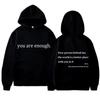 You're Enough, cu litere imprimate, bumbac, mâneci lungi, supradimensionate, cu buzunar, creativitate, casual, pentru femei