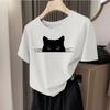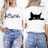 (Mărimea asiatică) Imprimare la modă Fața de pisică Tendință Drăguț Stil minunat Femei Casual Top femei Casual T Îmbrăcăminte Tricou grafic Tricou cu mânecă scurtă