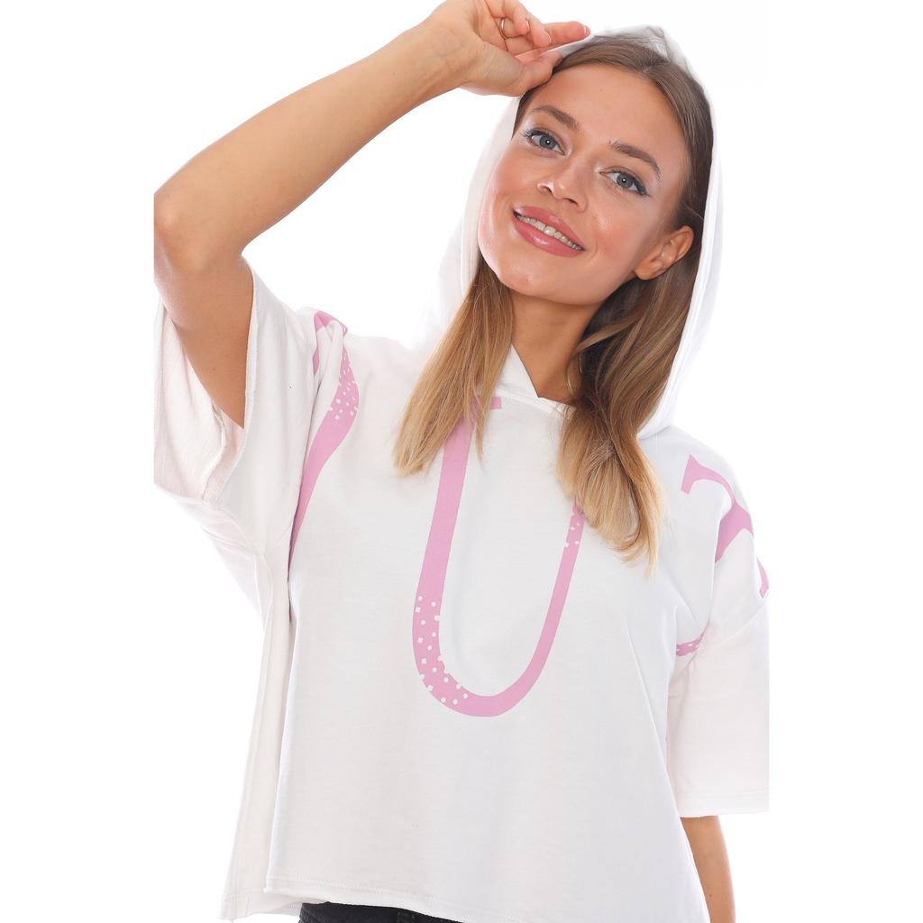 Hanorac cu glugă pentru femei, alb, cu litere imprimate