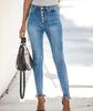 Blugi din denim elastic cu talie înaltă pentru femei, subțiri, cu nasturi, pantaloni creion, pantaloni de damă