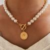 Colier elegant de perle de inimă de culoare aurie de 17 km pentru femei, la modă, asimetrice, coliere cu perle, bijuterii de nuntă la tendință 2022