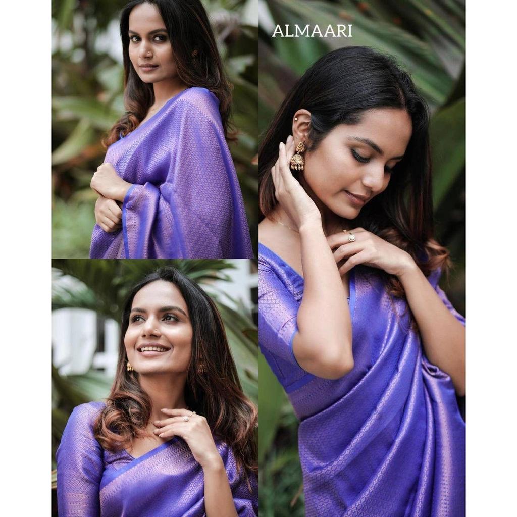 This beautiful saree is elegantly decorated with gorgeous Solid Jacquard weave that gives a perfect look to the outfit.
