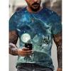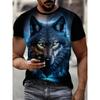 Tricou supradimensionat cu model de lup feroce, tricou cu imprimare 3D cu animale Harajuku, pentru bărbați, cu decolteu O, cu mânecă scurtă