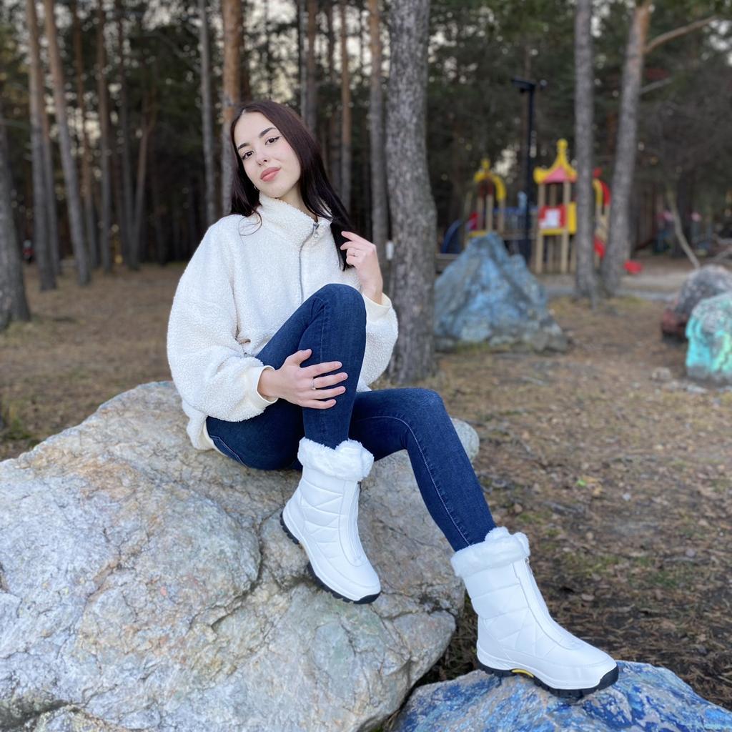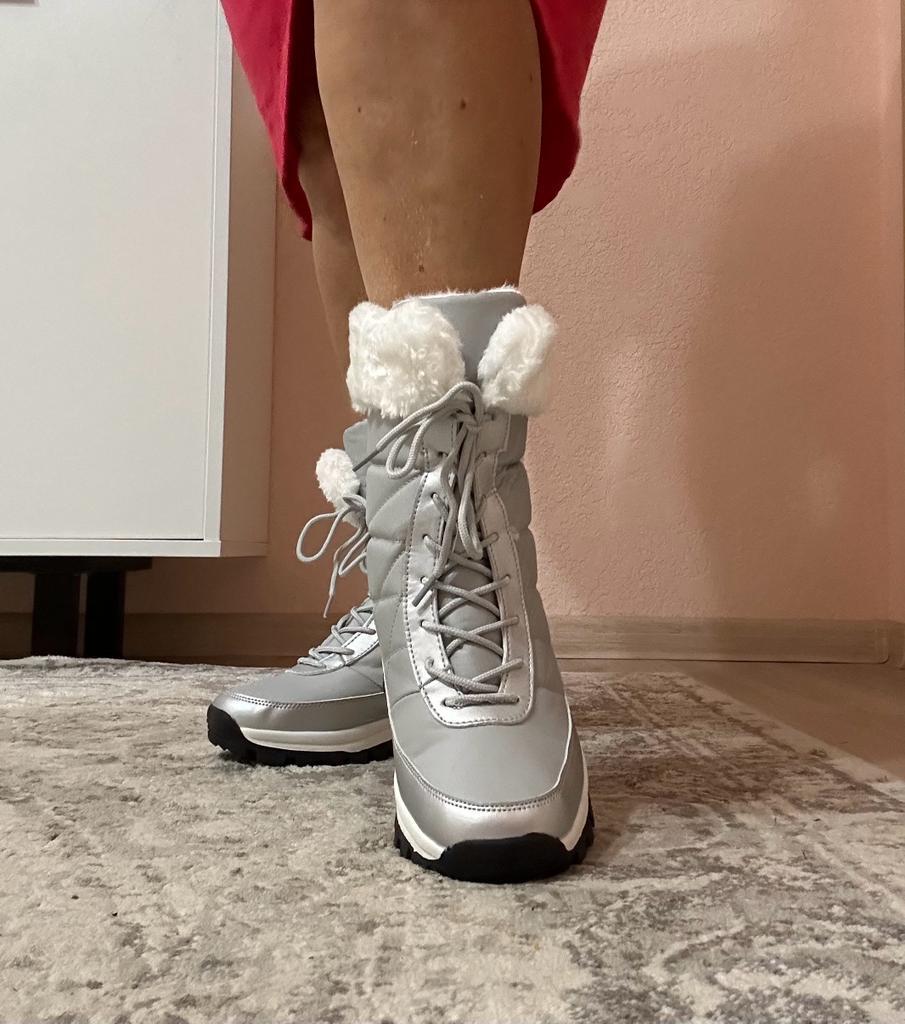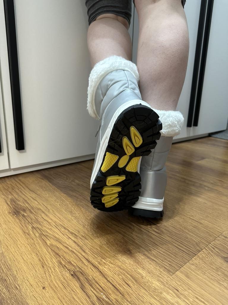 Cizme albe fabuloase pentru fete 🤍 Mereu am visat la cizme albe calde care să semene cu regina zăpezii. Marimea piciorului meu este de 25 cm, de la vanzator am ales un model de pantof marimea 39 (se indica ca piciorul are 24,5 cm). Pantofii mi se potrivesc perfect, ceea ce înseamnă că sunt mari. 。Aceste cizme sunt ideale pentru iarna deoarece au o captuseala foarte groasa si calda. 。 Cizmele au lungimea și lățimea optime. Potrivit și pentru femeile cu picioare late. 。Talpa anti-alunecare este realizată într-un stil la modă. 💔 Nu mi-a fost foarte confortabil să-mi pun pantofii pentru că nu avea blocare laterală. ♥️ Sunt atât de moi și confortabili, parcă ai merge prin nori. Absolut nu vreau să le scot. 👌 Le recomand tinerelor fete și femeilor din sezonul rece care vor să-și pună în valoare stilul casual.