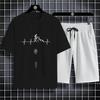 Moda de vară Stil sport în aer liber Desene animată 2d Bicicletă Imprimat Tricou bărbătesc cu gât turnat Set de pantaloni Confortabil Uscare rapidă