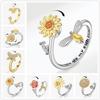 Inele rotative din argint S925 pentru femei, cu zirconiu cubic, floarea soarelui, inel de anxietate albine, bijuterii rotative anti-stres cadou