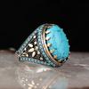 Inel Vintage Mare Oval cu Piatră Zircon Simulată Pentru Bărbați Femei Culoare Argint Antic Zircon Negru Inel Antichizat Bijuterii Turcești Retro
