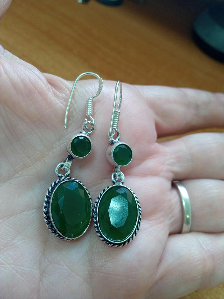 Frumos Smarald(Simulat) Cerceu bijuterii din argint 925 lucrat manual cu pietre pretioase