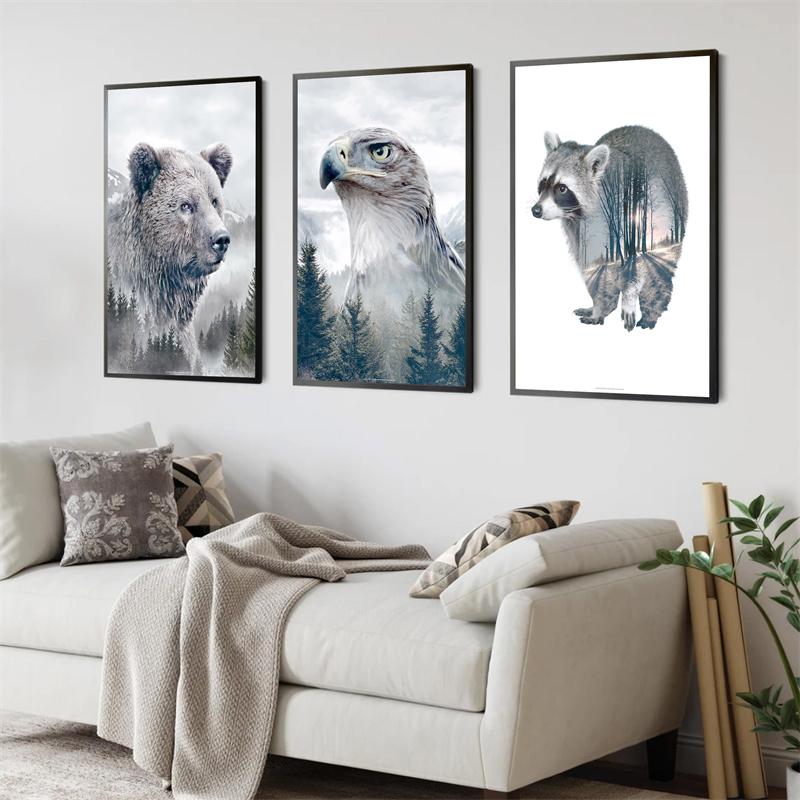 Animale în stil nordic poster estetică ilustrație peisaj natural Ursul lup imprimare pânză Walll Art Decorare acasă Decor camere