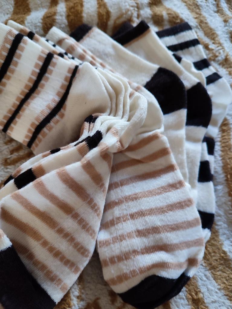 Culoarea este puțin diferită de cea din fotografie și nu sunt la fel de înalte ca în fotografie. Mărimea este potrivită, dar banda elastică este puțin îngustă (dar nu pe toată lumea, 2 perechi - banda elastică nu se întinde). Compoziția este ciudată, credeam că îmi va transpira piciorul, dar e normal. Sunt foarte ușor de spălat și uscat rapid.