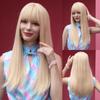 EASIHAIR Peruci blonde lungi din păr sintetic, drepte naturale, Cosplay Lolita, perucă drăguță cu breton pentru femei, peruci din fibre rezistente la căldură