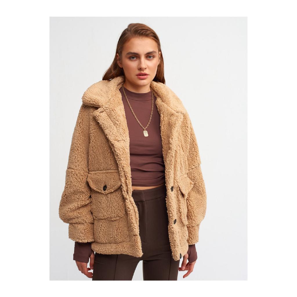 6821 Palton de pluș-bej închis