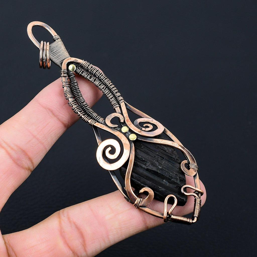 Turmalină Neagră Pietre Prețioase Pur Cupru Sârmă Înfășurată Artizanat Pendant Bijuterii Cadou pentru Ea