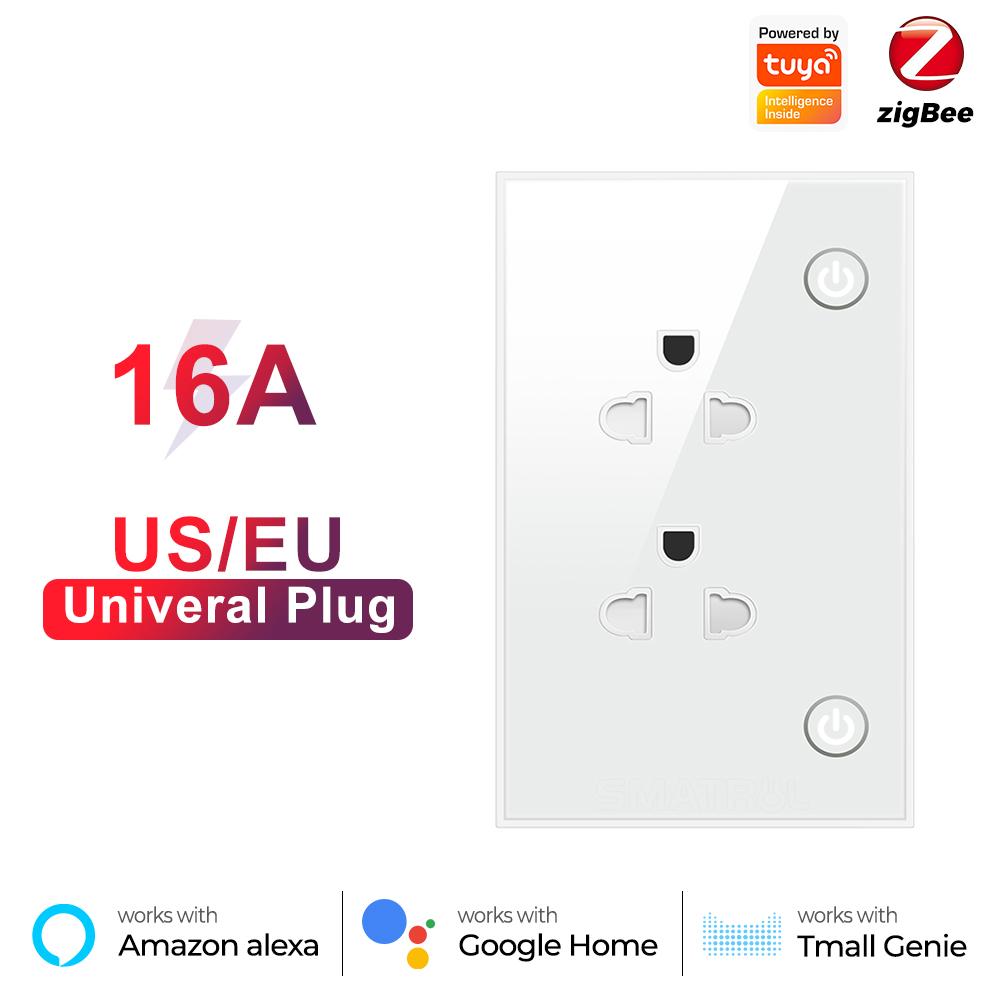 16a Tuya Zigbee Us Eu Adaptor priză inteligentă în priză electrică de perete Temporizator voce pornit oprit 110v 240v pentru Google Home Alexa